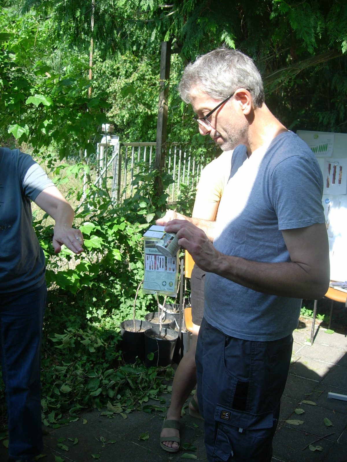 Apfel-Experte John-Hermann Cordes von der Obstbaumschule Hermann Cordes in Holm zeigt die Veredelungstechnik der Okulation. Marc Albano von Gartenfernsehen.de moderiert die Erklärungen.