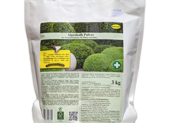 - Algenkalk zur Bodenverbesserung, der Bodensäuren neutralisiert und Nährstoffe aktiviert.
